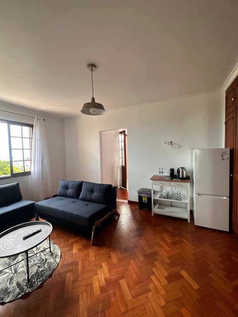 Located on the third floor. The grey room is divided into two rooms. The bedroom with a double bed, and a leisure room. In the leisure room you can enjoy a a smart t.v, a fridge to keep your food and drinks cold, a kettle, and of course you can’t miss the coffee machine, so you can drink your coffee in the mornings on the balcony while enjoying the view.
